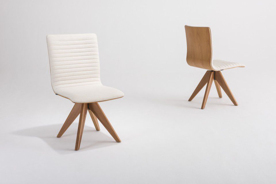 Cadeira em lamina natural e estofada, base giratória ou oçpção fixa